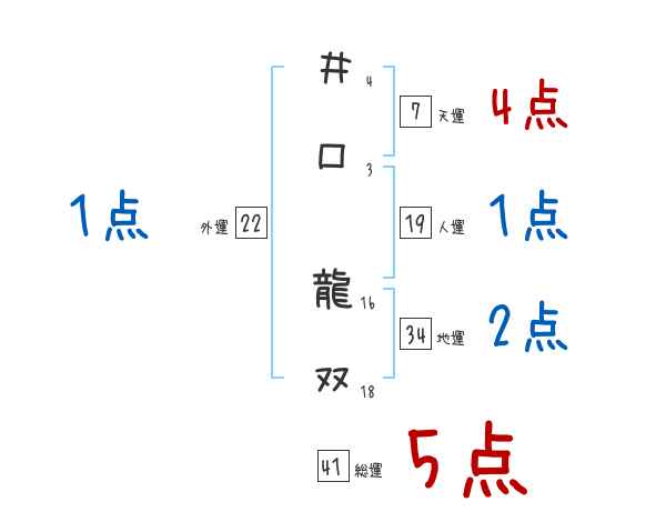 井口龍双さんの画数の鑑定結果