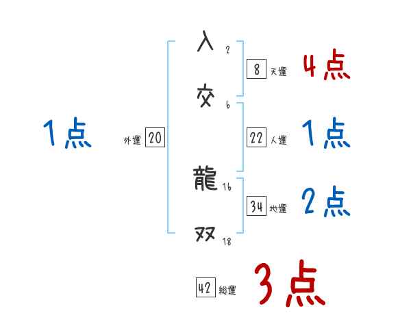 入交龍双さんの画数の鑑定結果