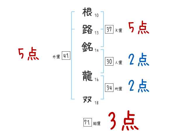 根路銘龍双さんの画数の鑑定結果