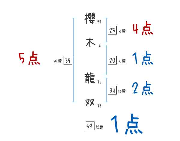 櫻木龍双さんの画数の鑑定結果