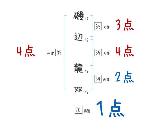 磯辺龍双さんの画数の鑑定結果