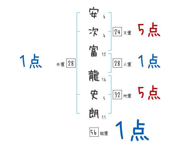 安次富龍史朗さんの画数の鑑定結果