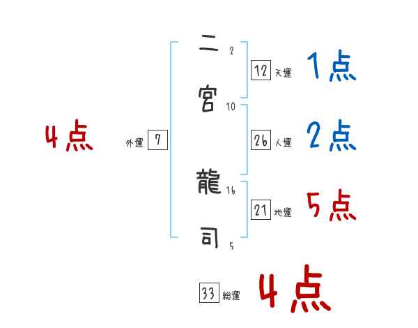 二宮龍司さんの画数の鑑定結果