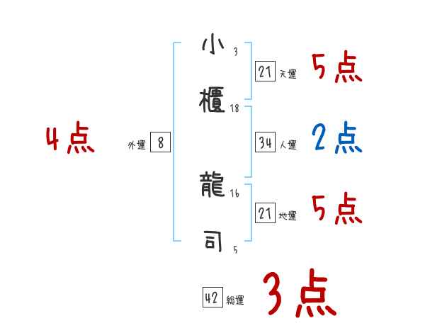 小櫃龍司さんの画数の鑑定結果