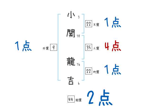小関龍吉さんの画数の鑑定結果