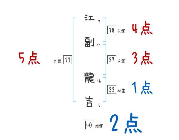 江副龍吉さんの画数の鑑定結果