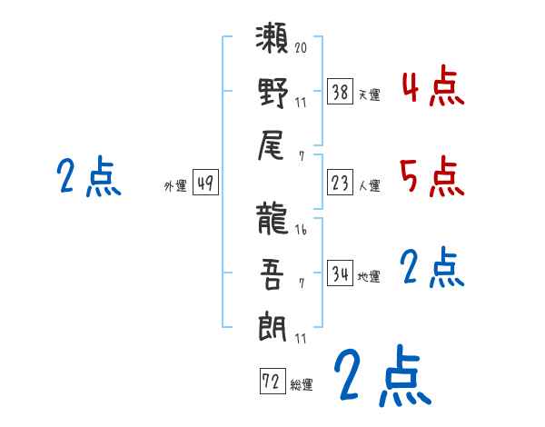 瀬野尾龍吾朗さんの画数の鑑定結果