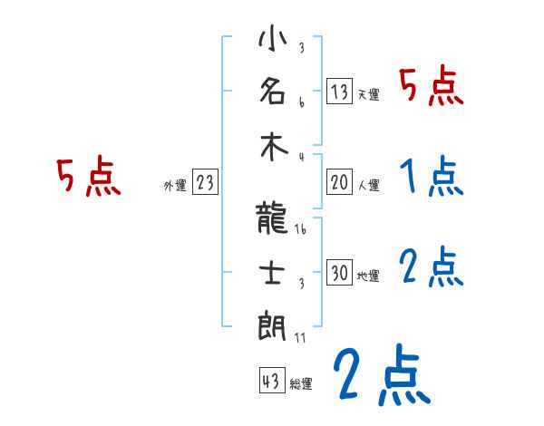 小名木龍士朗さんの画数の鑑定結果
