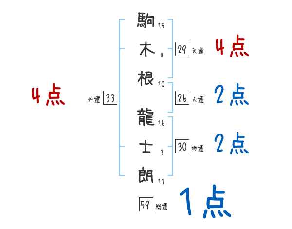駒木根龍士朗さんの画数の鑑定結果