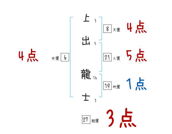 上出龍士さんの画数の鑑定結果