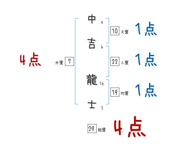 中吉龍士さんの画数の鑑定結果