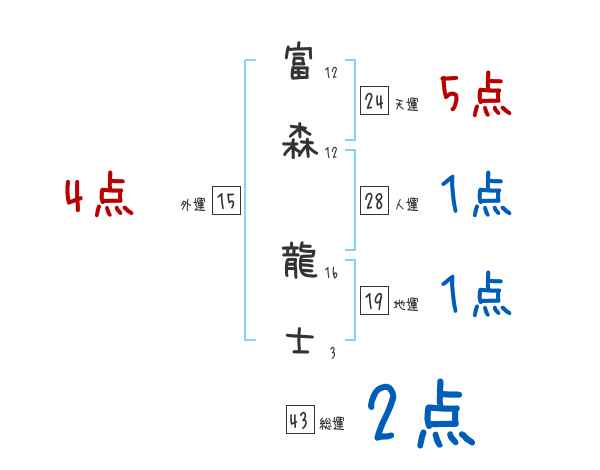 富森龍士さんの画数の鑑定結果