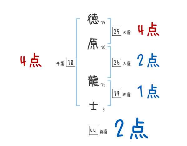 徳原龍士さんの画数の鑑定結果