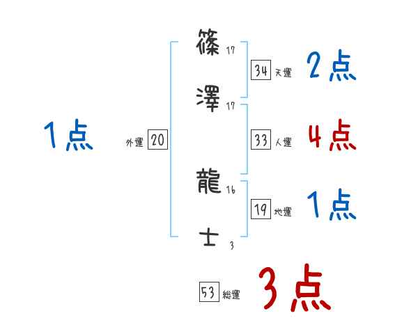 篠澤龍士さんの画数の鑑定結果