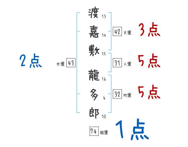 渡嘉敷龍多郎さんの画数の鑑定結果