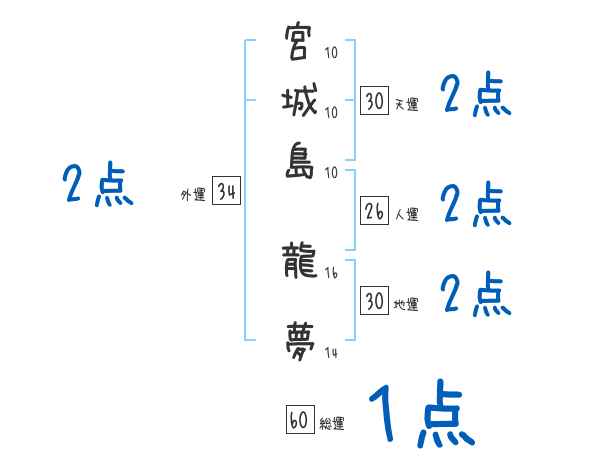 宮城島龍夢さんの画数の鑑定結果