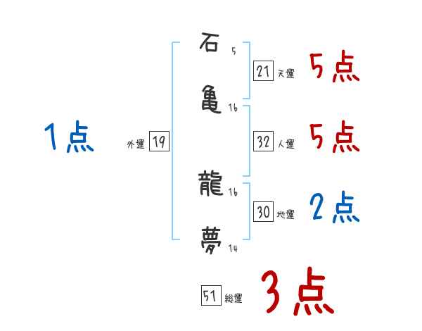 石亀龍夢さんの画数の鑑定結果