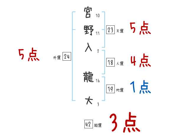 宮野入龍大さんの画数の鑑定結果