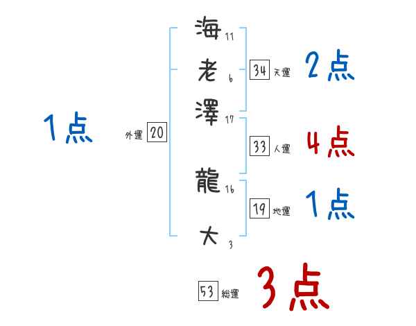 海老澤龍大さんの画数の鑑定結果