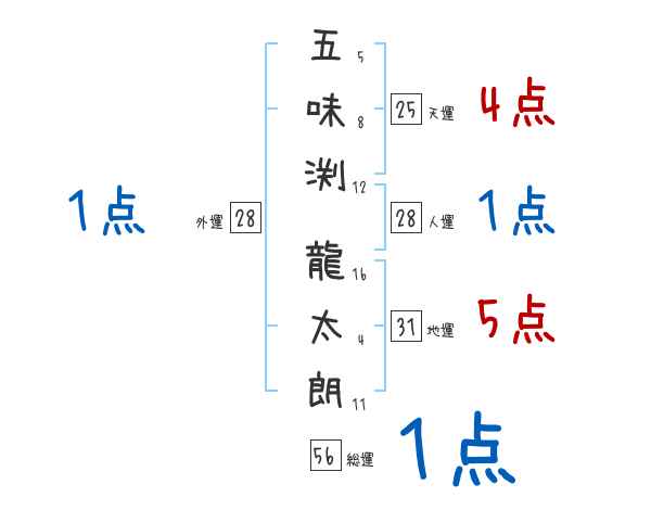 外運![]() | 五味渕龍太朗さんの外運は28画の1つ星!家庭環境に注意。スポーツで活躍できる能力があるかも。 生活面を象徴する運勢です。外部から受ける影響力を表し、結婚運、家庭運や職場、環境への順応性を表します。 |
