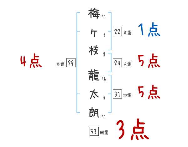 梅ヶ枝龍太朗さんの画数の鑑定結果