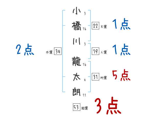 小橋川龍太朗さんの画数の鑑定結果