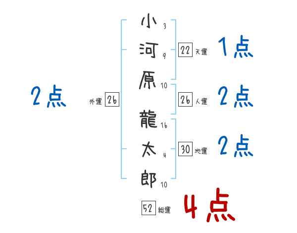 総運![]() | 小河原龍太郎さんの総運は52画の4つ星!先見性と独創性に優れ考える力がある。強運の持ち主。 あなたの人生を表す1番重要な運勢です。生涯を通じて影響する総合運となり、主に50歳以降の晩年期に影響を及ぼします。 |