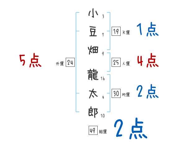 外運![]() | 小豆畑龍太郎さんの外運は24画の5つ星!家庭運が良く順調な人生。金運にも恵まれる。 生活面を象徴する運勢です。外部から受ける影響力を表し、結婚運、家庭運や職場、環境への順応性を表します。 |