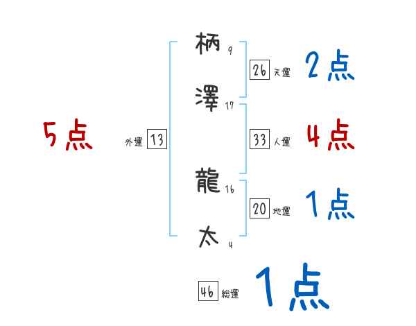 柄澤龍太さんの画数の鑑定結果