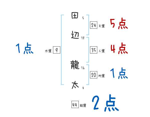 田辺龍太さんの画数の鑑定結果