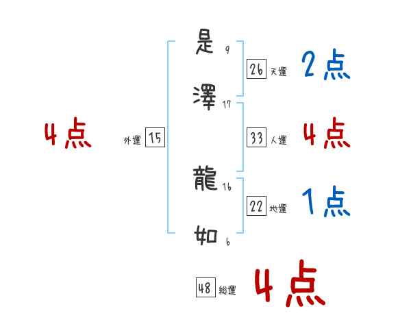 是澤龍如さんの画数の鑑定結果