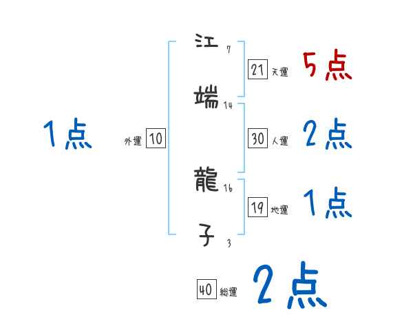 江端龍子さんの画数の鑑定結果