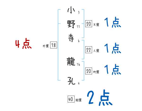 小野寺龍孔さんの画数の鑑定結果