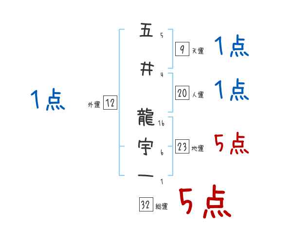 総運![]() | 五井龍宇一さんの総運は32画の5つ星!柔軟性があり成功する。チャンスが多く金運が良い。 あなたの人生を表す1番重要な運勢です。生涯を通じて影響する総合運となり、主に50歳以降の晩年期に影響を及ぼします。 |
