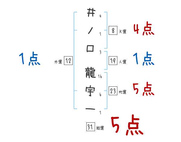 井ノ口龍宇一さんの画数の鑑定結果