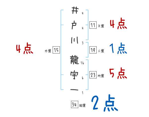 井戸川龍宇一さんの画数の鑑定結果