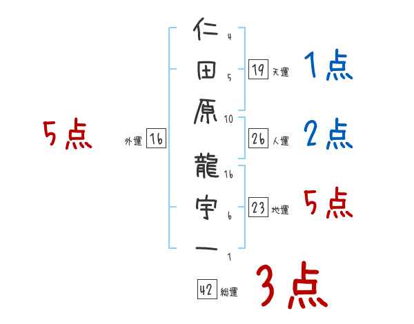仁田原龍宇一さんの画数の鑑定結果