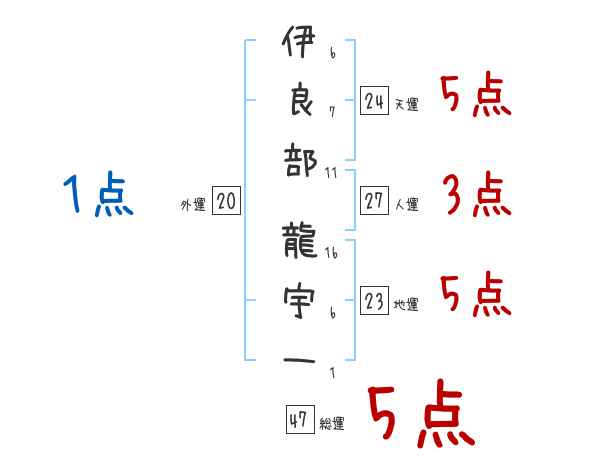 伊良部龍宇一さんの画数の鑑定結果