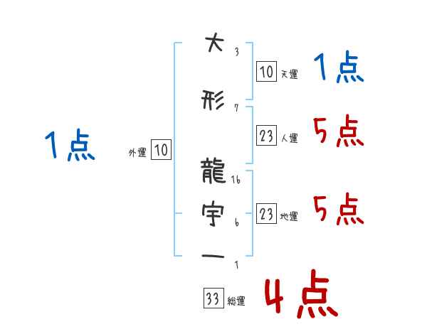 大形龍宇一さんの画数の鑑定結果