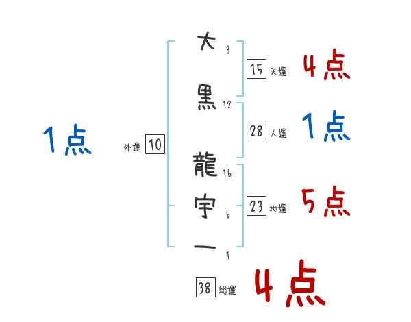 大黒龍宇一さんの画数の鑑定結果