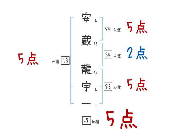 安蔵龍宇一さんの画数の鑑定結果