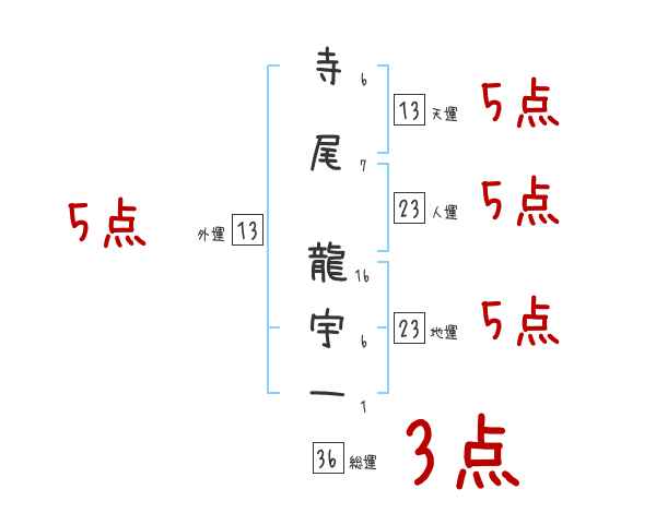 寺尾龍宇一さんの画数の鑑定結果