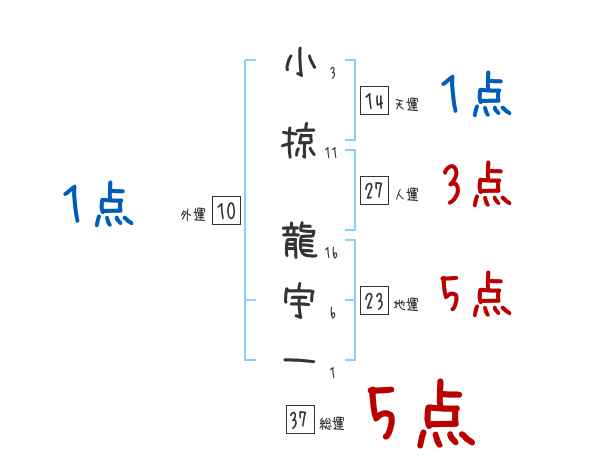 天運![]() | 小掠龍宇一さんの天運は14画の1つ星!人に対して優しいがストレスを溜め込みがち。人間関係のトラブルを避けるよう気をつけましょう。 家系が持つ宿命的な運勢を表します。祖先から受け継いだ苗字ですので自分の力が及びません。家柄を象徴します。 |