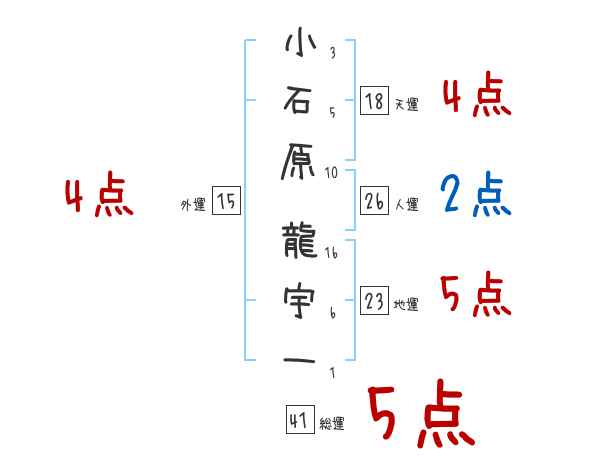 小石原龍宇一さんの画数の鑑定結果