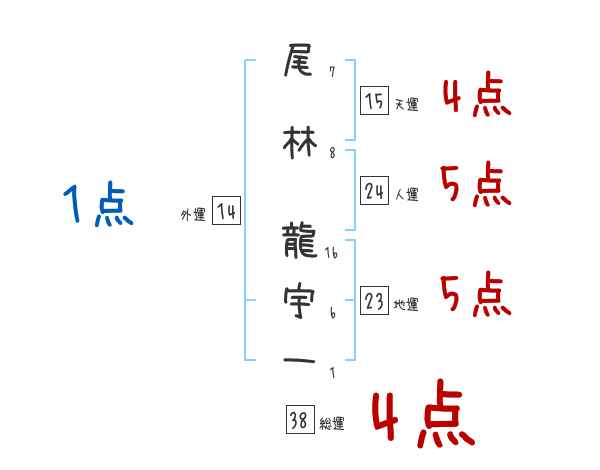 尾林龍宇一さんの画数の鑑定結果