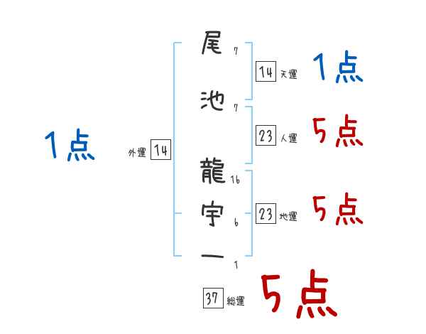 尾池龍宇一さんの画数の鑑定結果