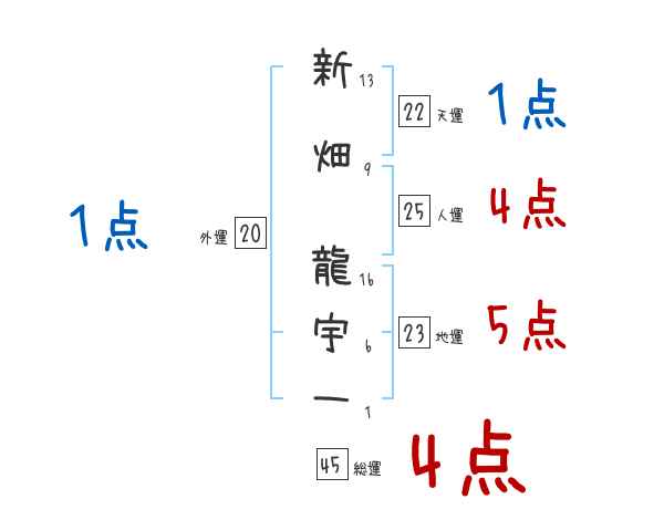新畑龍宇一さんの画数の鑑定結果