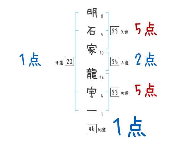 明石家龍宇一さんの画数の鑑定結果