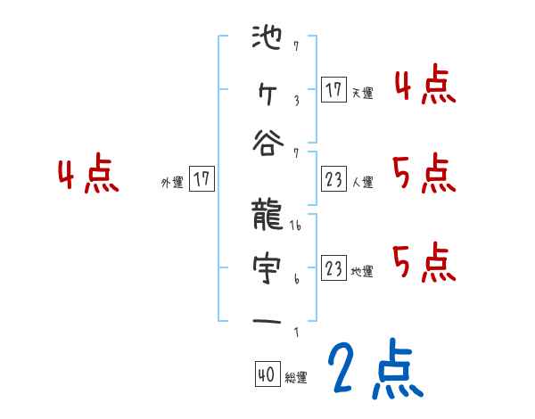 池ヶ谷龍宇一さんの画数の鑑定結果