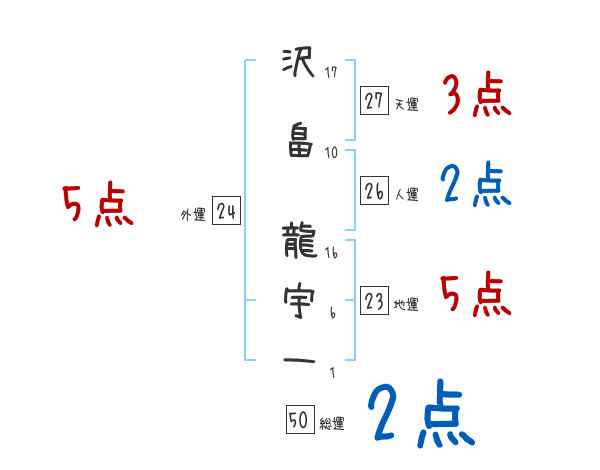 沢畠龍宇一さんの画数の鑑定結果